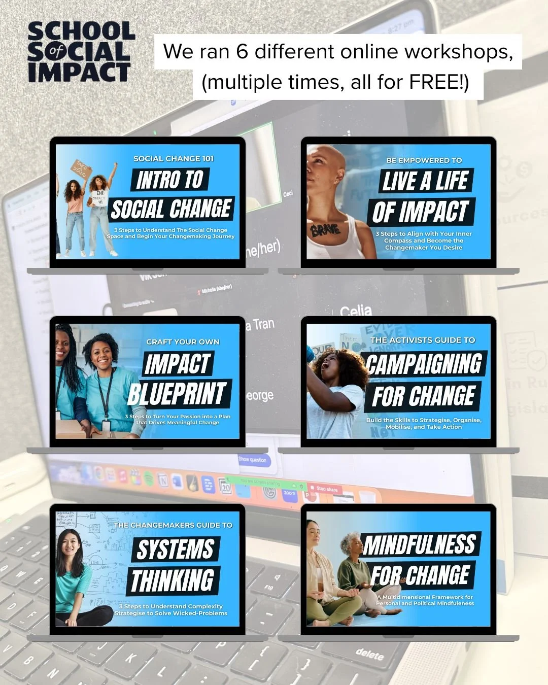 Across the year, we delivered six different online workshops — many of them run multiple times — supporting changemakers at different stages of their journey.